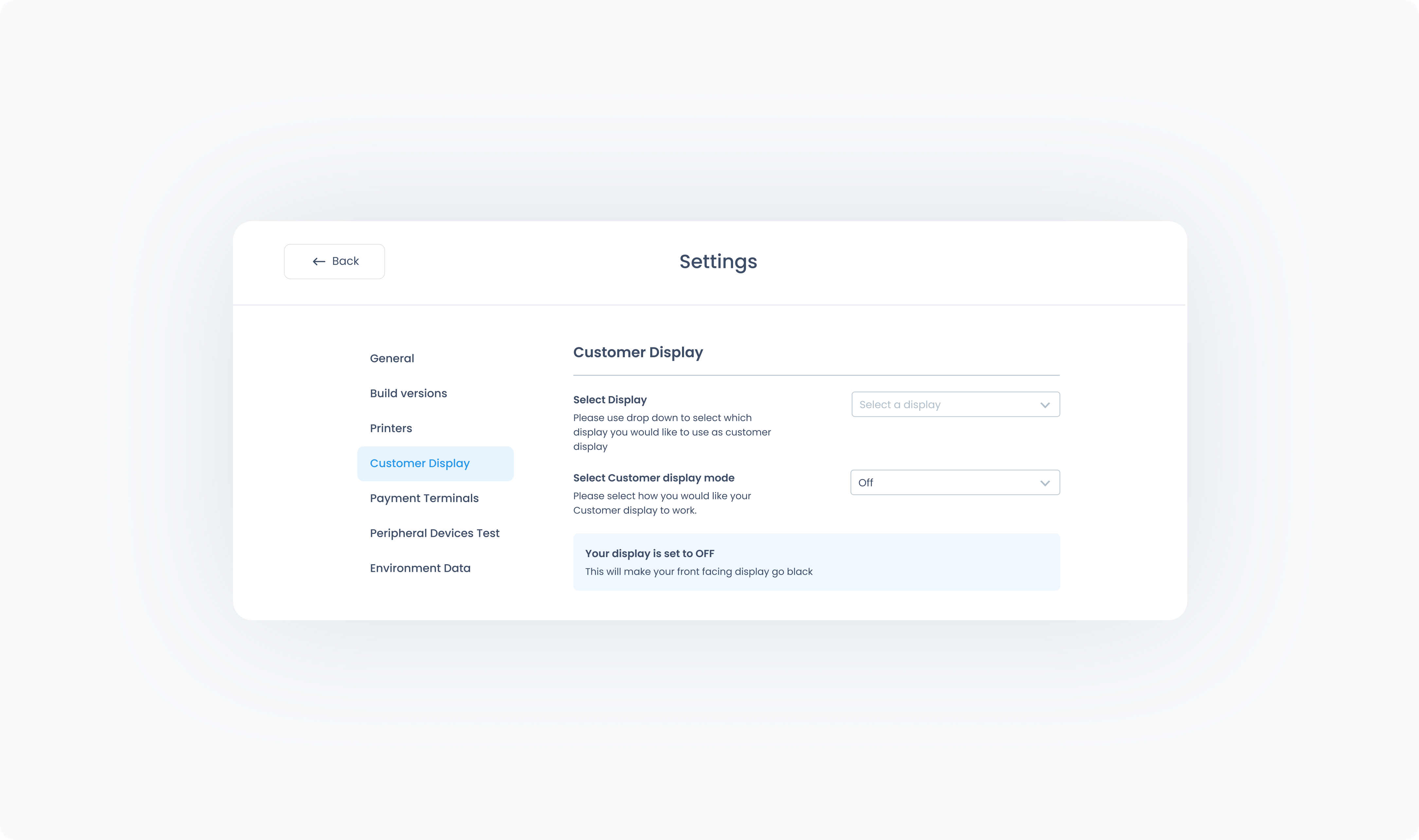 If your flow includes any screens designed for the customer display, you can enable or disable it from this section. This allows you to control whether the customer sees relevant information during the checkout process.