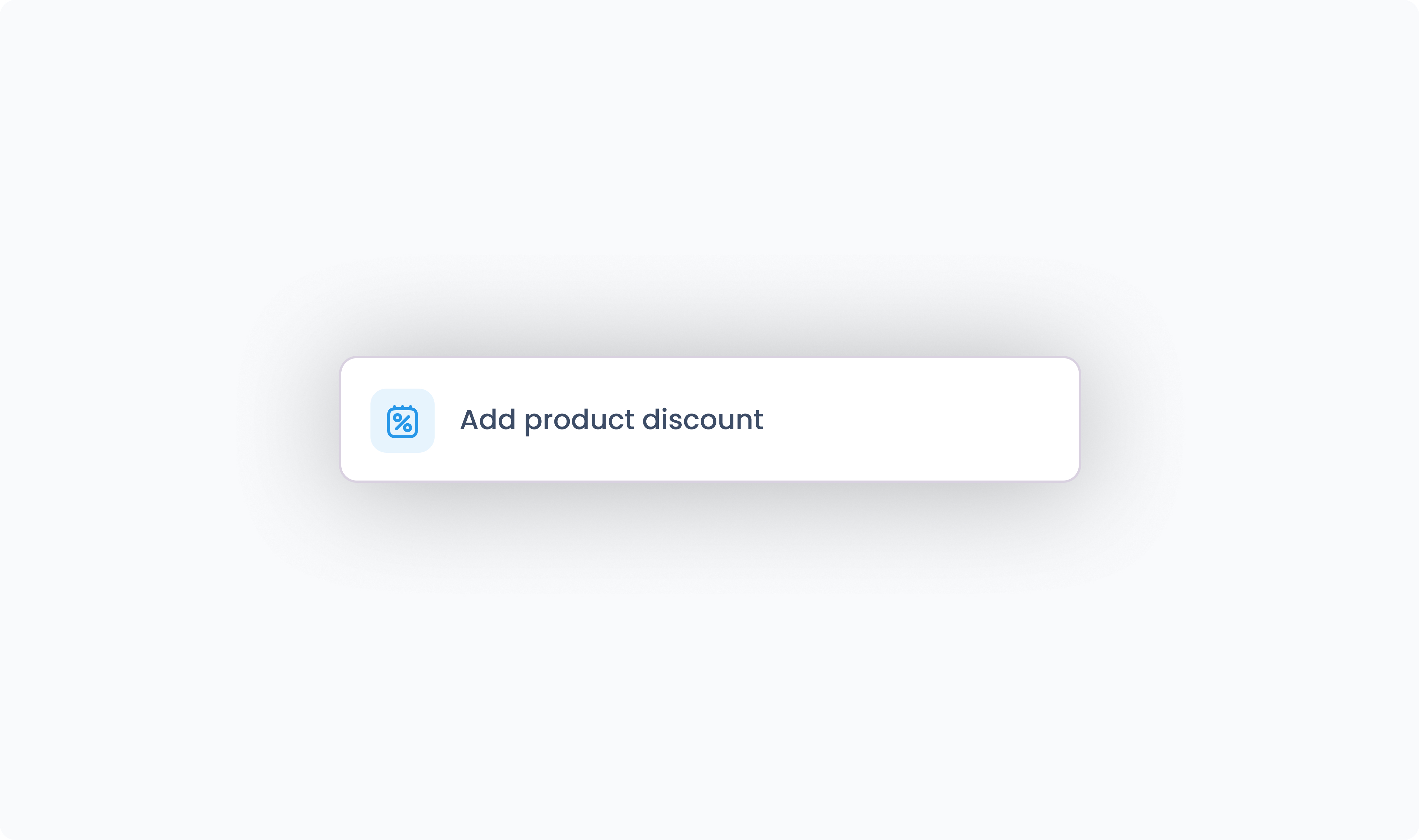The Add product discount action applies a discount to the product currently active in the flow. You can configure this action in one of two ways: