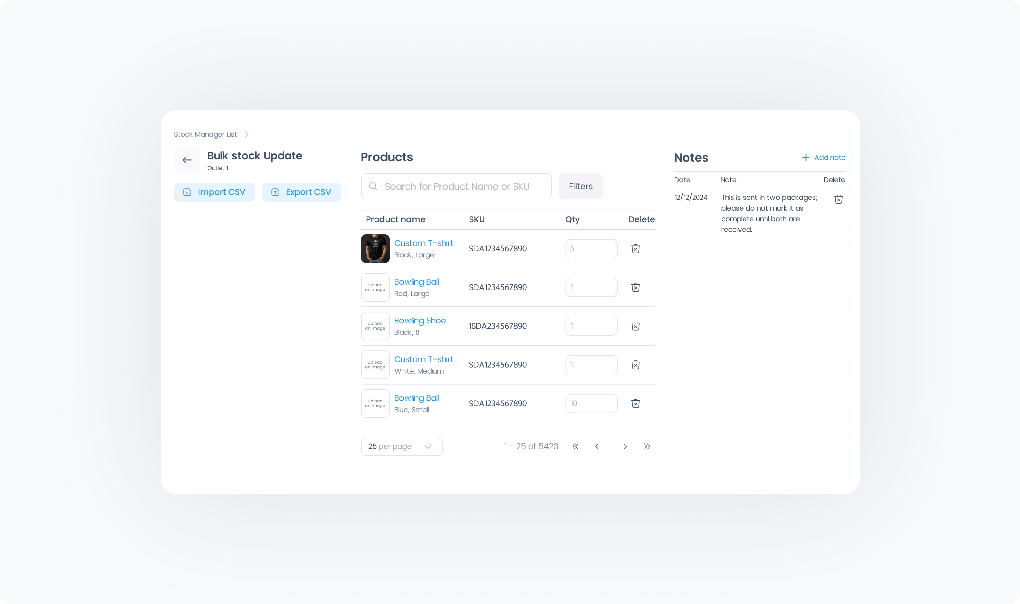 Bulk Stock Update lets you adjust stock quantities for multiple products in an Outlet at the same time. Instead of updating each product manually, you can export a list, make changes in a spreadsheet, and import the updates back into Manage.
