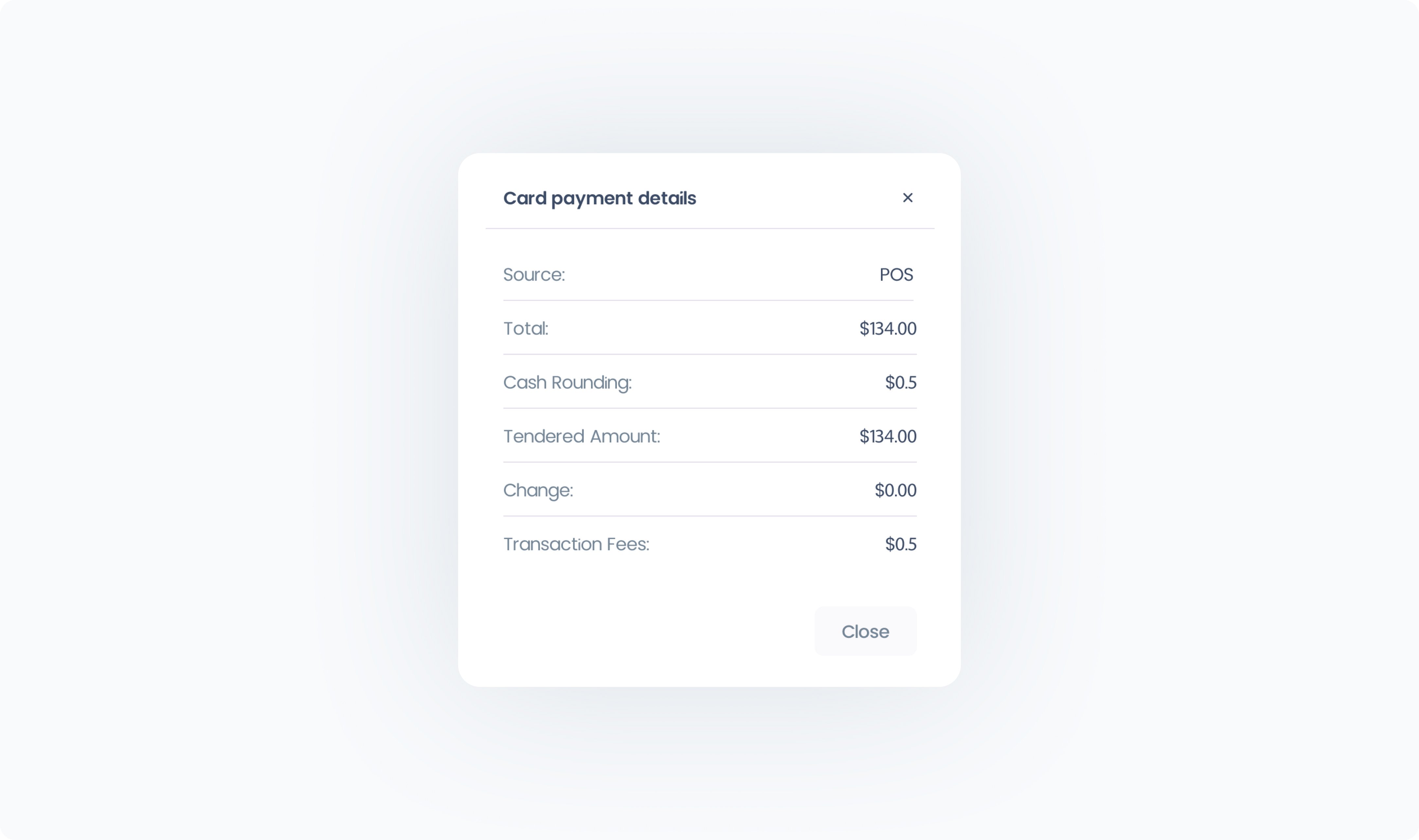 When you click View in the Transactions Report, a small popup appears with key details about that specific payment. This is a quick way to confirm what happened in the transaction without leaving the report.