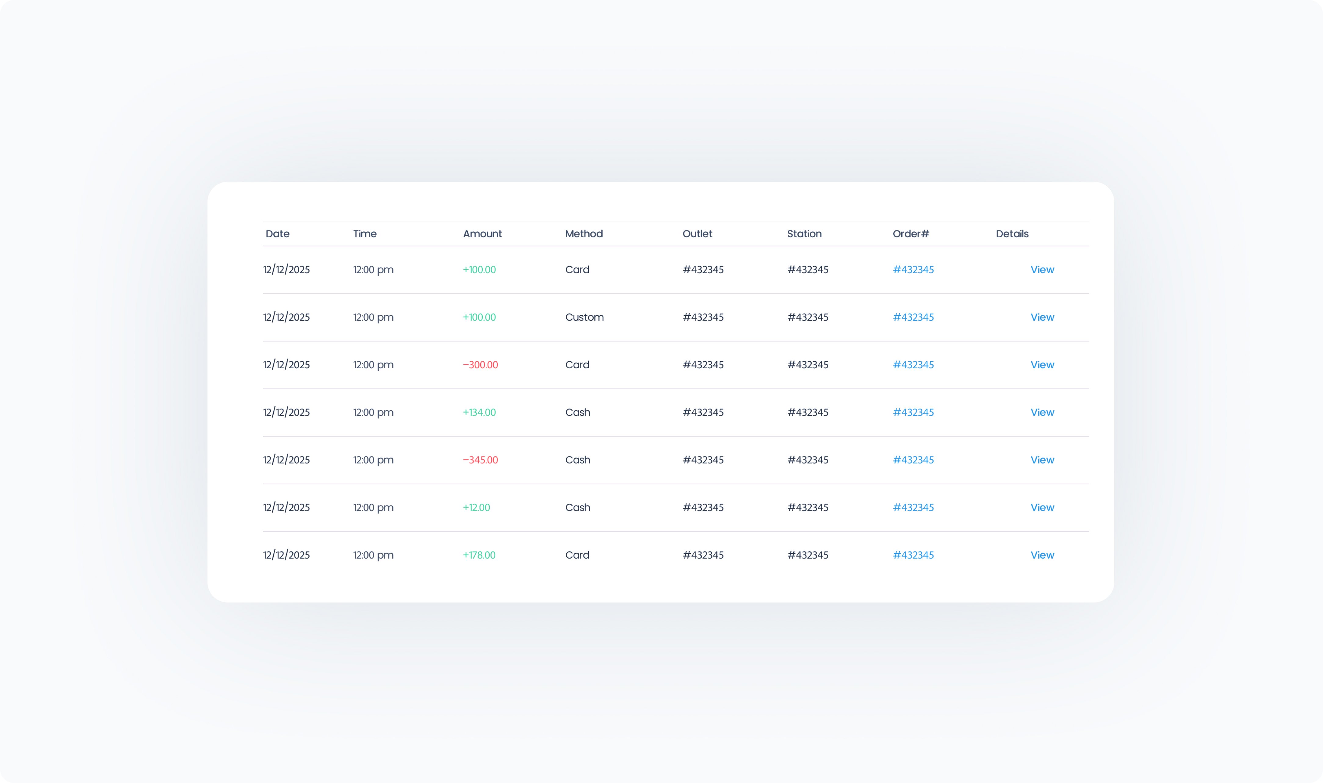 This lightweight view is designed for quick checks and reconciliation. For a full context of what the payment was for, you can cross-reference the Order # shown in the Transactions Report, which links back to the related order in the Orders tab.